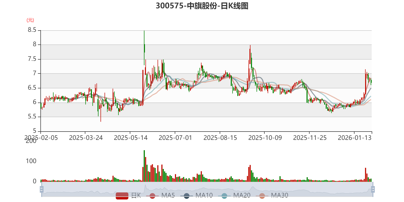 中证智能财讯中旗股份(300575)1月29日晚间披露2025年度业绩预告,预计2025年归母净利润亏损1.8亿元至2.2亿元,上年同期盈利1172.1万元;扣非净利润亏损1.75亿元至2.15亿元,上年同期盈利2449.86万元。以最新收盘价计算,市净率(LF)约1.62倍,市销率(TTM)约1.27倍。